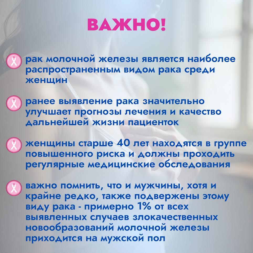 Рак молочной железы - серьезное заболевание, однако оно излечимо при условии своевременно начатого лечения. Не бойтесь обращаться к врачу, регулярно обследуйтесь и ведите
